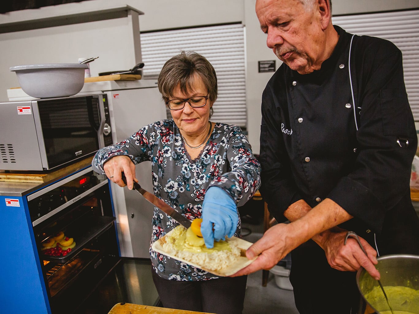 Du hilfst mit bei der Zubereitung von Mahlzeiten für bis zu 40 Personen (hauptsächlich Abendessen)